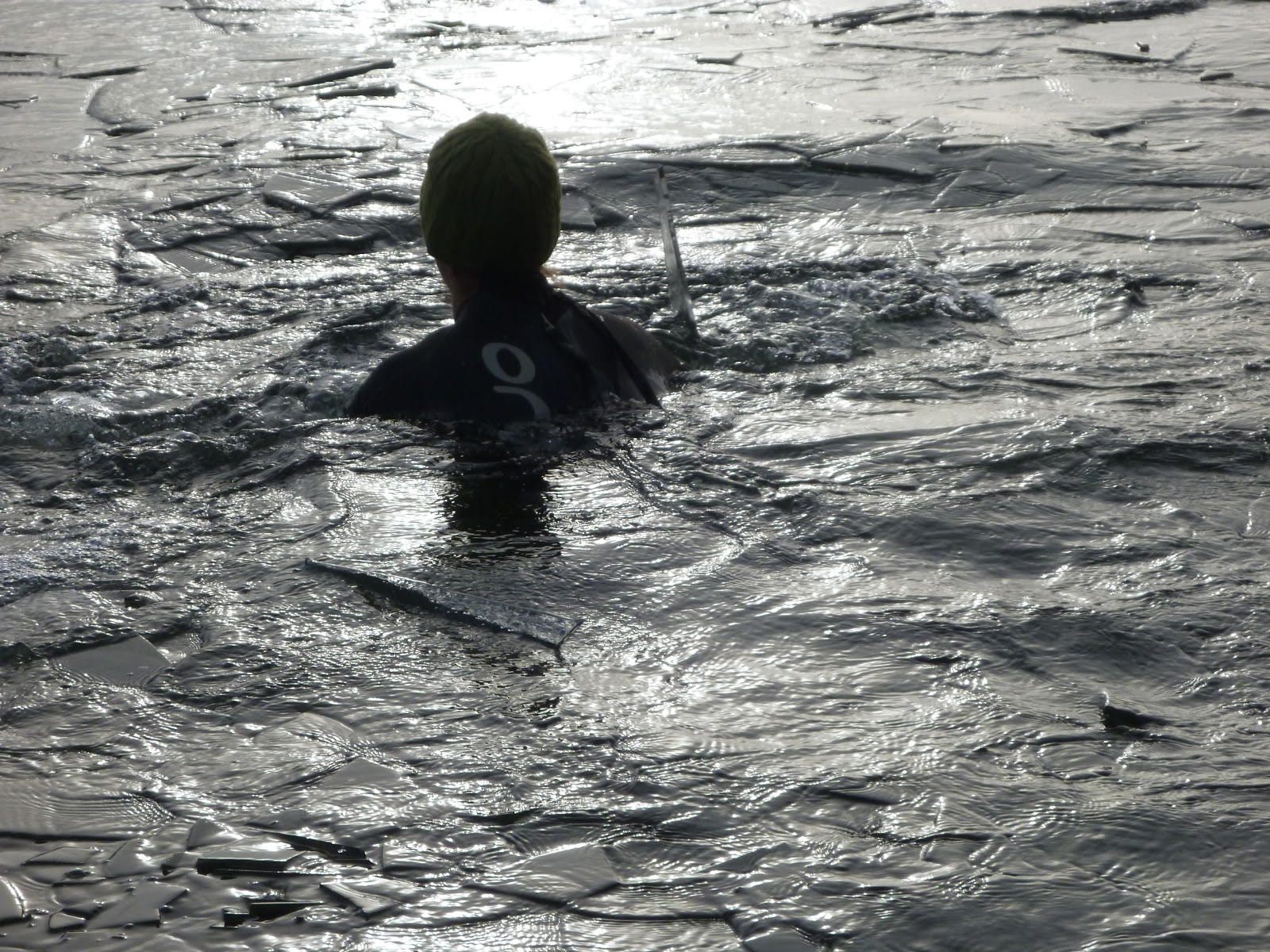Wow that is icy, Ness in first with me following....did you know that if you pee and you dont have a wetsuit on.....there is no warmth to be had! I found that out just as the water hit the belly button! Right go for it, breath out and plunge in, holy smoly that is cold, the coldest so far sans suit, no tingling, no pain, just a slight breathlessness which dissipated rapidly and complete numbness.